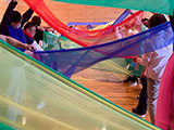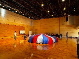パラシュートムーブメントは、パラシュートの上や下での遊びを夏祭りの音楽で楽しんだあと、最後はトランペットの生演奏でのファンタジーの世界を味わいました。